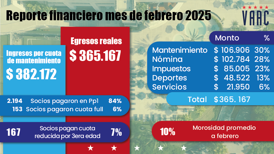 En este informe, te presentamos un vistazo a los ingresos de febrero, cómo los gestionamos y las inversiones que realizamos para seguir mejorando nuestras instalaciones y servicios.