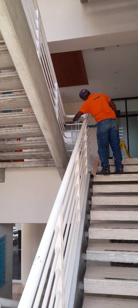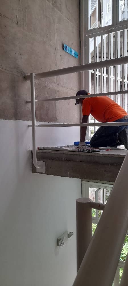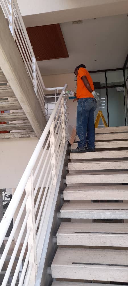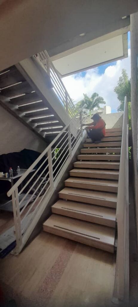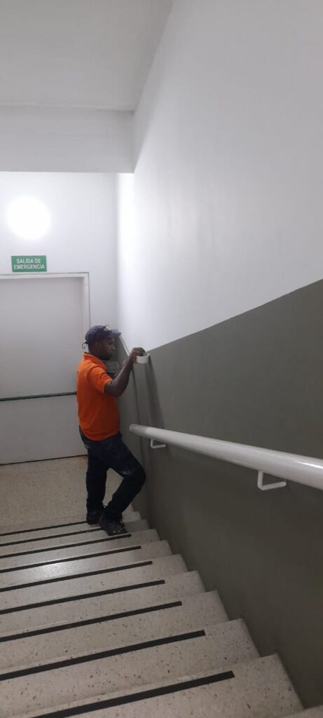 Pintura a escaleras de emergencia en el edificio de Gimnasio