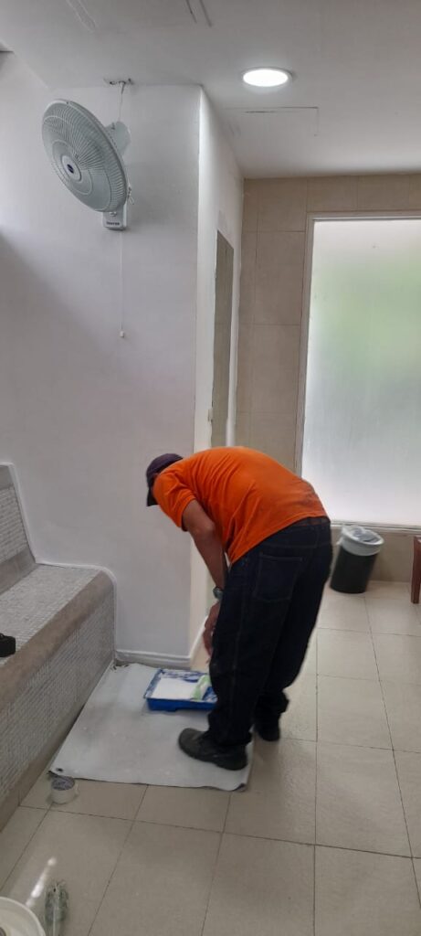 Mantenimiento y pintura al baño de damas, gimnasio