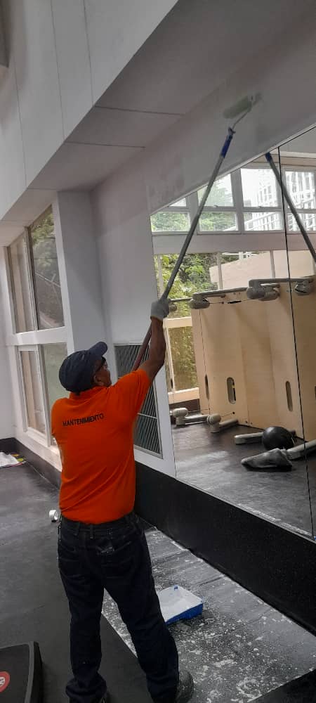Mantenimiento y pintura en el área de cardio en el gimnasio